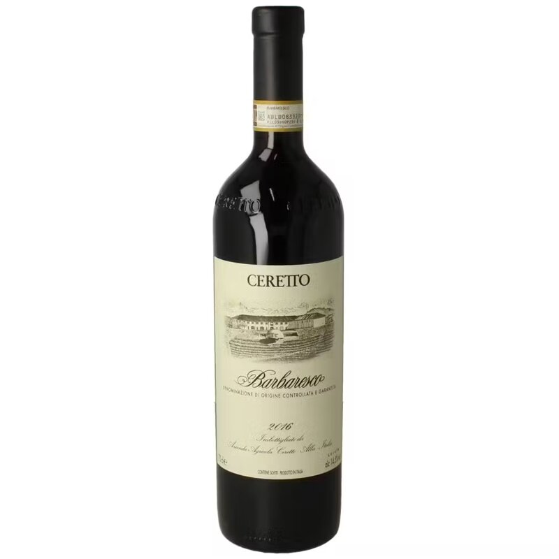 Il Barbaresco Ceretto è frutto dell’unione delle migliori uve provenienti dai Cru di Asili e di Treiso, in provincia di Cuneo. Le uve Nebbiolo provenienti da vigne differenti, vengono vinificate come un’unica massa per meglio esaltarne le caratteristiche e l’equilibrio. Riposa quindi per 2 anni in contenitori di legno per poi rimanere altri 6 mesi in bottiglia. È di un colore rosso granato brillante con riflessi aranciati. Al naso si apre con note eteree arricchite da sentori di cuoio e di confettura di ciliegia. In bocca si caratterizza per un buon corpo e tannino, che lo rendono interessante come vino da conservare in bottiglia..